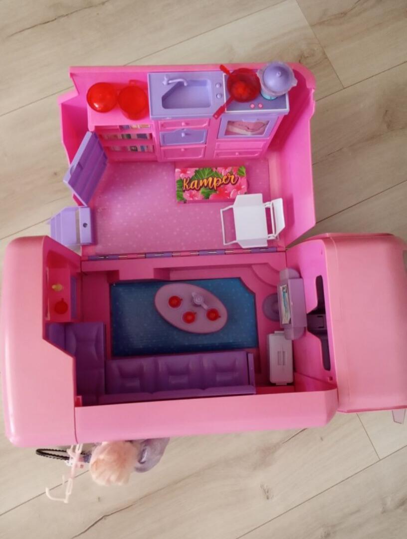 Kamper dla lalek barbie, rower i akcesoria ,duży samochód bus do kupienia w Grajewie